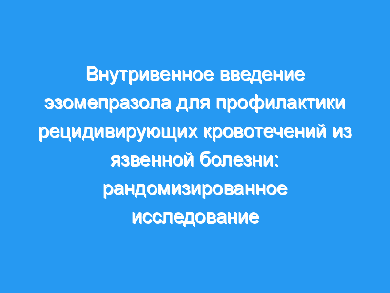 Определить, предотвращает ли внутривенное введение эзомепразола рецидивирующее кровотечение из язвенной болезни лучше, чем плацебо, в выборке многонациональных пациентов. Дизайн: Рандомизированное исследование, проведенное в период с октября 2005 года по декабрь 2007 года, пациенты, поставщики медицинских услуг и исследователи были слепы к групповому распределению.