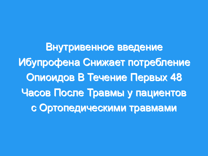 Травматологический центр 1-го уровня. Пациенты: В общей сложности 99 последовательных пациентов с ортопедическими травмами с переломами ребер, лица, конечностей и/или таза были рандомизированы для получения либо 800 мг ибупрофена внутривенно (53 пациента), либо плацебо (44 пациента), вводимого каждые 6 часов, в общей сложности 8 доз в течение 48 часов после поступления и в течение те же препараты PRN вместе с пепцидом по 20 мг внутривенно/внутривенно два раза в день. Чтобы установить эффективность уменьшения боли, анализ был впоследствии проведен в модифицированной группе с намерением лечить, которая включала 74 рандомизированных субъекта с исходным показателем боли более 2. Основными результатами были снижение потребления опиоидов и снижение интенсивности боли (PI). Вмешательство: Введение исследуемых препаратов. Измерения результатов: PI, измеренный по Числовой шкале оценки, потребление опиоидов, скорректированное на эквивалентную дозу морфина, и время до первого введения наркотика.