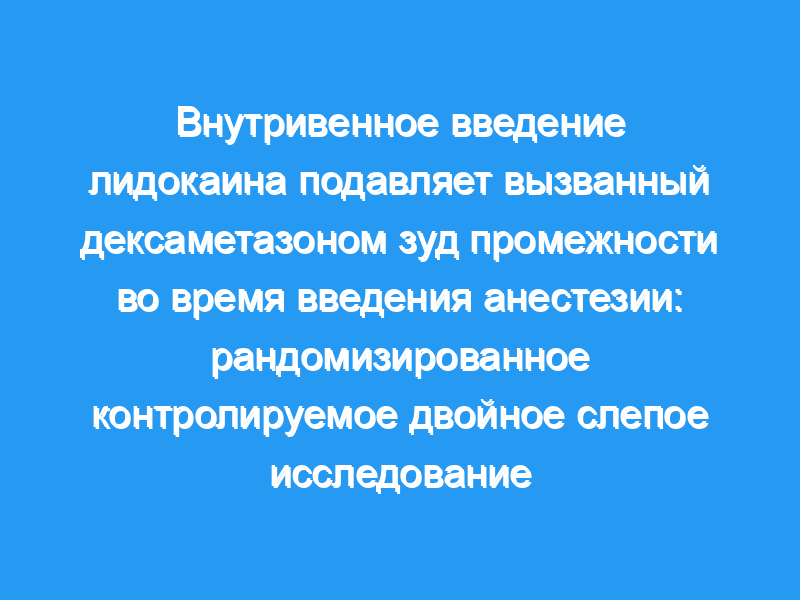 В это исследование было включено 400 пациентов, которые были случайным образом распределены на четыре группы (n=100 в каждой). Затем пациенты получали внутривенную индукцию анестезии в виде следующей последовательности лекарств: инъекции 0,9% хлорида натрия (плацебо) 10 мл в I группе, лидокаин 0,5 мг/кг во II группе, лидокаин 1 мг / кг в III группе и лидокаин 1,5 мг/ кг в IV группе, через 1 минуту инъекции 10 мг дексаметазона во всех группах.