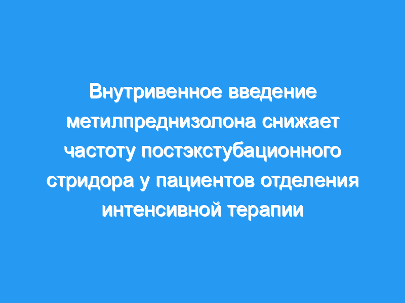 Определить, снижает ли лечение кортикостероидами частоту постэкстубационной обструкции дыхательных путей в отделении интенсивной терапии для взрослых. Дизайн: Клинический эксперимент.