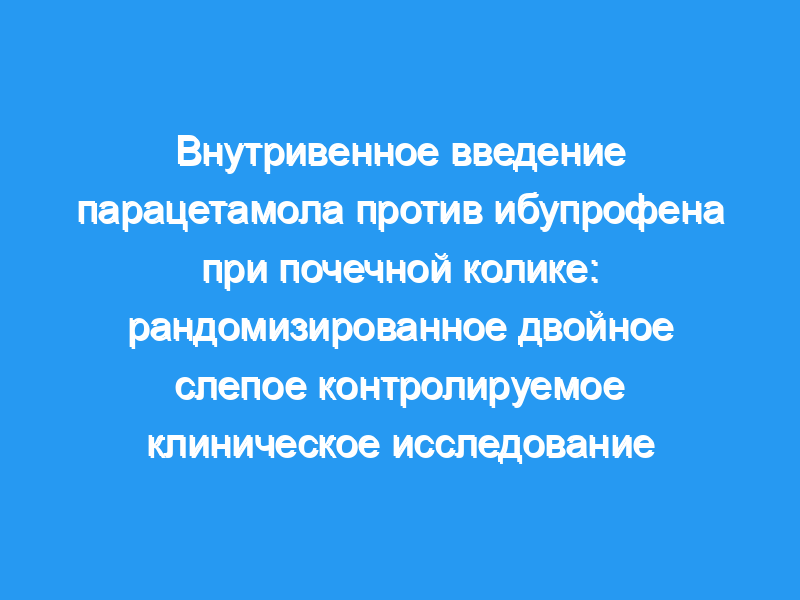Различия в улучшении боли между двумя группами составили 9,5 (5,4-13,7) через 15 минут (р = 0,000) и 17,1 (11,9-22,5) через 30 мин, причем оба предпочитали ибупрофен парацетамолу (р = 0,000). Хотя десять (10,1%) пациентов в группе парацетамола нуждались в спасательном препарате, в группе ибупрофена было только два (2%) пациента (разница: 8%, 95% ДИ 0,7-16%, р = 0,02). Внутривенное введение 800 мг ибупрофена более эффективно, чем внутривенное введение парацетамола, для прекращения почечной колики через 30 мин.