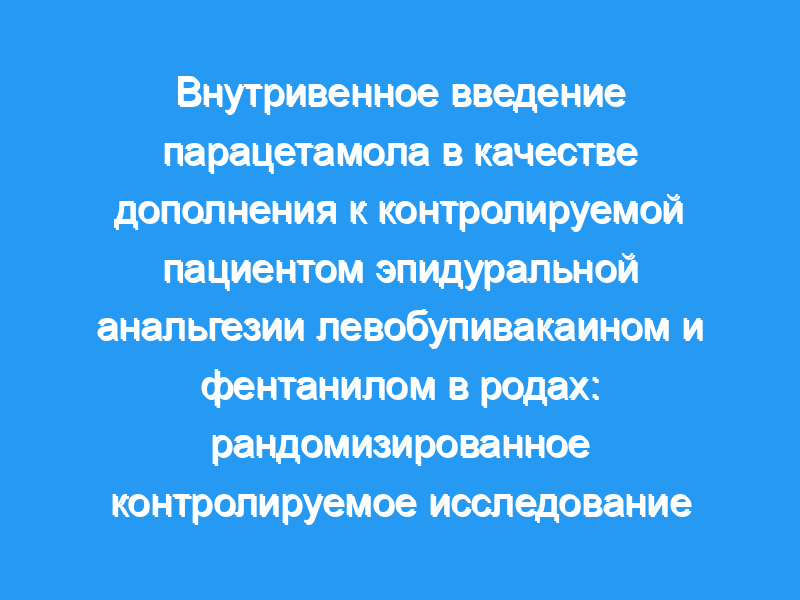Применение 1000 мг парацетамола внутривенно снижает среднее почасовое потребление препарата эпидуральным путем. Таким образом, внутривенный парацетамол является безопасным и эффективным дополнением к PCEA при обезболивании родов. Регистрация клинических испытаний: Реестр клинических испытаний-Индия (http://ctri.nic.in/Clinicaltrials/login.php ), пробный регистрационный номер 2013/09/003968.