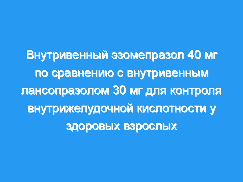 В этом открытом перекрестном исследовании здоровые взрослые, отрицательные к Helicobacter pylori, были рандомизированы на одну из двух последовательностей лечения, каждая из которых состояла из двух 5-дневных доз. периоды внутривенного введения эзомепразола 40 мг или внутривенного лансопразола 30 мг. Круглосуточный внутрижелудочный мониторинг рН проводили на 1-й и 5-й дни каждого периода дозирования.