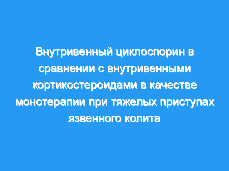 Предпосылки и цели: Циклоспорин был эффективен у пациентов с резистентными к стероидам приступами язвенного колита (ЯК). Мы исследовали эффекты внутривенного (В/в) циклоспорина в качестве однократной внутривенной терапии (без глюкокортикостероидов) при тяжелом ЯК и сравнили их с реакцией на глюкокортикостероиды.