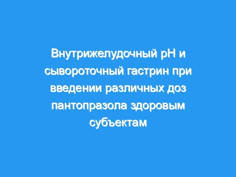 Цель и дизайн: Влияние увеличения доз пантопразола, недавно разработанного ингибитора протонной помпы, вводимого одновременно в суточных дозах 40, 80 и 120 мг, на внутрижелудочный рН и профили сывороточного гастрина было изучено у 15 здоровых людей в рандомизированном двойном слепом перекрестном исследовании и сравнивалось к записям без терапии. Измерения внутрижелудочного рН и сывороточного гастрина проводили на 7-й день лечения путем непрерывной регистрации рН и радиоиммунологического анализа в образцах крови, полученных с интервалом в 1 час, соответственно.