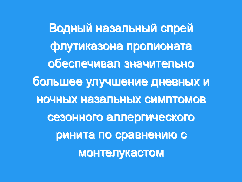 Статистически значимые различия в пользу FP200QD по сравнению с MON10QD наблюдались для среднего изменения от исходного уровня в дневном общем оценки назальных симптомов (P <, 0,001), дневные индивидуальные оценки назальных симптомов (P <, 0,001), общее количество ночных симптомов (P <, 0,001) и все индивидуальные оценки назальных симптомов (P <, or = 0,002) в течение 15-дневного периода лечения. FP200QD и MON10QD хорошо переносились.