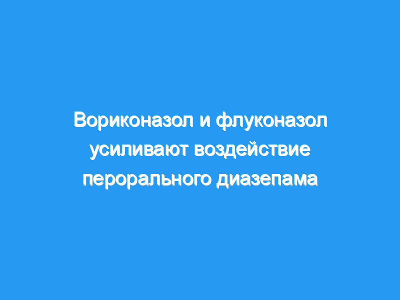 В фазе вориконазола площадь под кривой времени концентрации диазепама в плазме (AUC 0-бесконечность) увеличивалась (среднее геометрическое отношение) в 2,2 раза (p <, 0,05, 90% доверительный интервал [ДИ] 1,56-2,82). Это было связано с увеличением среднего периода полувыведения (t(1/2)) с 31 ч до 61 ч (p <, 0,01) после приема вориконазола. В фазе флуконазола AUC 0-бесконечности диазепама была увеличена в 2,5 раза (p <, 0,01, 90% ДИ от 1,94 до 3,40), а t(1/2) был увеличен с 31 ч до 73 ч (p <, 0,001). Пиковая концентрация диазепама в плазме крови практически не изменялась при применении вориконазола и флуконазола. Фармакодинамика диазепама была изменена лишь незначительно.