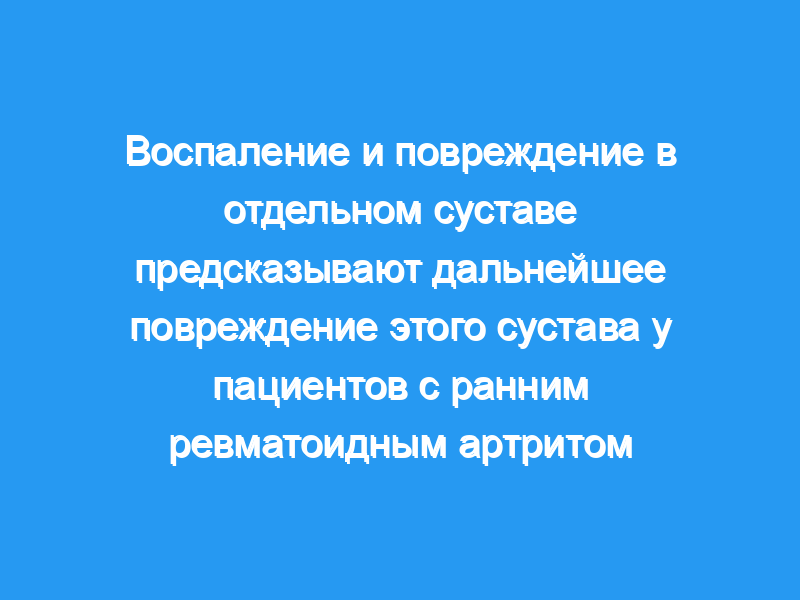 Локальное проявление ранней активности заболевания РА, как на исходном уровне, так и при 1-летнем наблюдении, тесно связано с прогрессированием повреждения в отдельном суставе.
