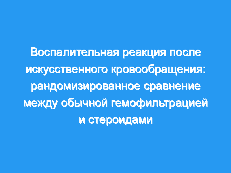Противовоспалительное действие CUF было сопоставимо со стероидами, что определяло аналогичный провоспалительный ответ на CPB. Однако гемодинамика была незначительно нарушена CUF. Таким образом, нет никаких оснований предпочесть CUF стероидам у пациентов, проходящих плановое АКШ.