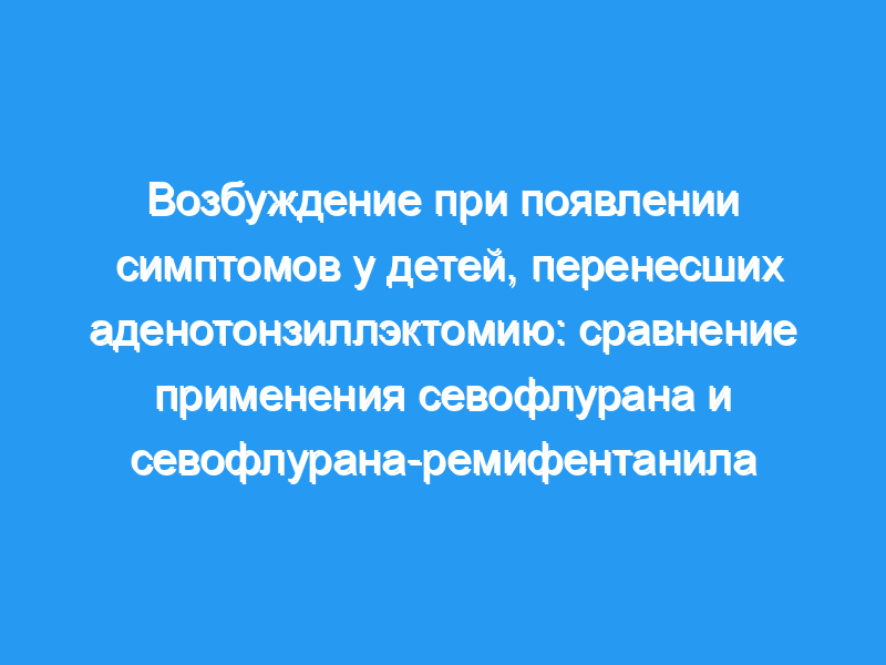 Севофлуран широко используется в детской анестезии, но часто вызывает возбуждение при появлении симптомов (ЭА). В этом исследовании оценивалось, снижает ли ограничение концентрации севофлурана путем сочетания ремифентанила с севофлураном частоту ЭА.