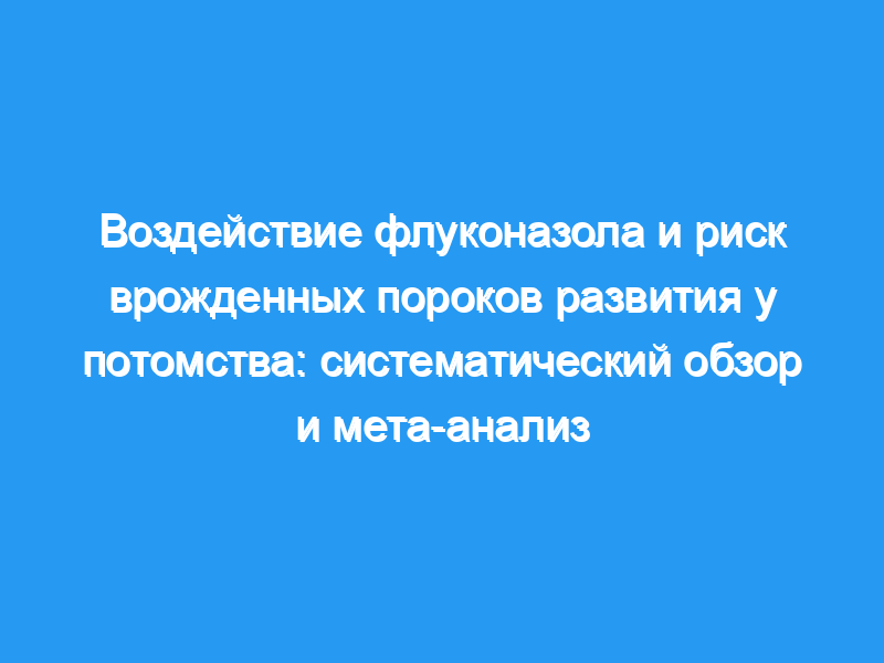 Частота общих пороков развития составила 1,10 (95% ДИ 0,98-1,25), пороков сердца — 1,29 (95% ДИ 1,05-1,58), черепно-лицевых дефектов — 1,25 (95% ДИ 0,88-1,77), а для конечностей/опорно-двигательного аппарата дефектов составил 0,82 (95% ДИ 0,59-1,13). В заключение следует отметить, что применение флуконазола в первом триместре беременности, по-видимому, не увеличивает общий риск врожденных пороков развития.