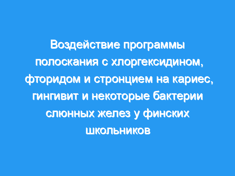 Чтобы выяснить, можно ли предотвратить кариес и гингивит путем периодического использования полосканий для рта с хлоргексидином и фтором со стронцием или без него, и выяснить, какое влияние они оказывают на количество стрептококков и лактобацилл mutans в слюне, в общей сложности 243 школьника в возрасте 11 лет с высокими показателями DMFS были случайным образом опрошены. разделены на четыре группы.