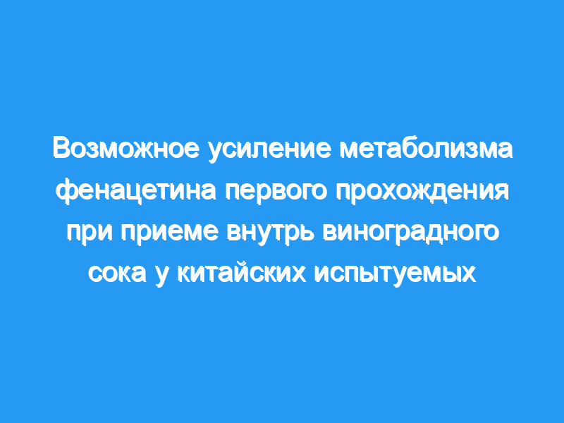 Это случайное исследование выявило неожиданный эффект виноградного сока Jufeng на CYP1A2-опосредованный метаболизм фенацетина. Было проведено исследование ингибирования CYP1A2 грейпфрутовым соком, но ошибка перевода привела к замене виноградного сока. Двенадцать здоровых испытуемых принимали однократную пероральную дозу фенацетина (900 мг) в двух рандомизированных случаях вместе с 200 мл воды или виноградного сока. Концентрации фенацетина и парацетамола в плазме крови оценивали с помощью h.p.l.c.
