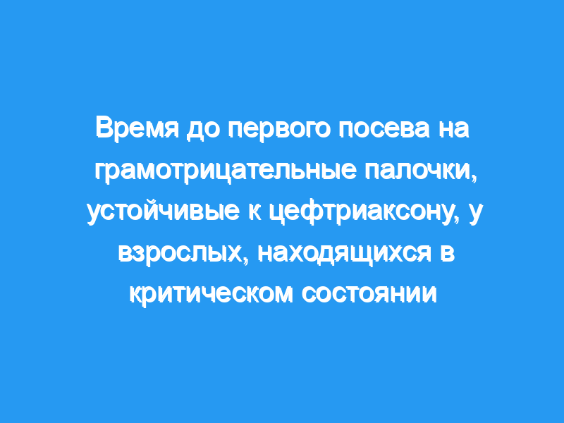В общей сложности в 524 респираторных культурах наблюдался рост GNRS, из которых 284 (54,2%) имели резистентность к цефтриаксону. В общей сложности в 376 культурах крови были получены ГНРС, из которых 70 (18,6%) имели устойчивость к цефтриаксону. Через 48 часов 87% респираторных культур и 85% культур крови, в которых в конечном итоге выросли ГНРС, устойчивые к цефтриаксону, продемонстрировали рост. Возраст, пол, прогнозируемый риск смерти в стационаре и предшествующее применение антибиотиков не предсказывали рост культур через 48 часов. Интерпретация: Среди когорты взрослых, находящихся в критическом состоянии, 13% респираторных культур и 15% культур крови, в которых в конечном итоге выросли ГНРС, устойчивые к цефтриаксону, не демонстрировали роста по крайней мере до 48 часов после сбора. Необходима дальнейшая работа для определения идеального времени для взрослых, находящихся в критическом состоянии, для прекращения приема антибиотиков широкого спектра действия, нацеленных на синегнойную палочку и грамотрицательные патогены, продуцирующие β-лактамазу расширенного спектра действия.< / p>