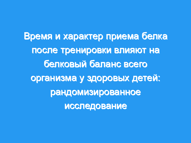 Доза и время приема белка после тренировки могут влиять на белковый баланс всего организма (WBPB) у взрослых, хотя сопоставимых данных у детей мало.
