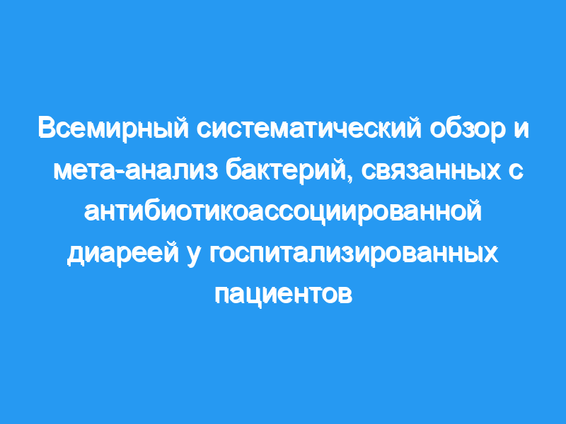 Из 7377 выявленных статей 56 соответствовали критериям включения. Объединяя все исследования, распространенность Clostridioides (Clostridium) difficile, Clostridium perfringens, Klebsiella oxytoca и золотистого стафилококка в качестве бактерий, связанных с AAD, среди госпитализированных пациентов составила 19,6%, 14,9%, 27% и 5,2% соответственно. Распространенность всех четырех бактерий была выше в Европе по сравнению с другими континентами. Самая высокая устойчивость C. difficile была оценена к ципрофлоксацину, а самая низкая — к хлорамфениколу, ванкомицину и метронидазолу. Данных о резистентности других бактерий к антибиотикам не было или было мало.
