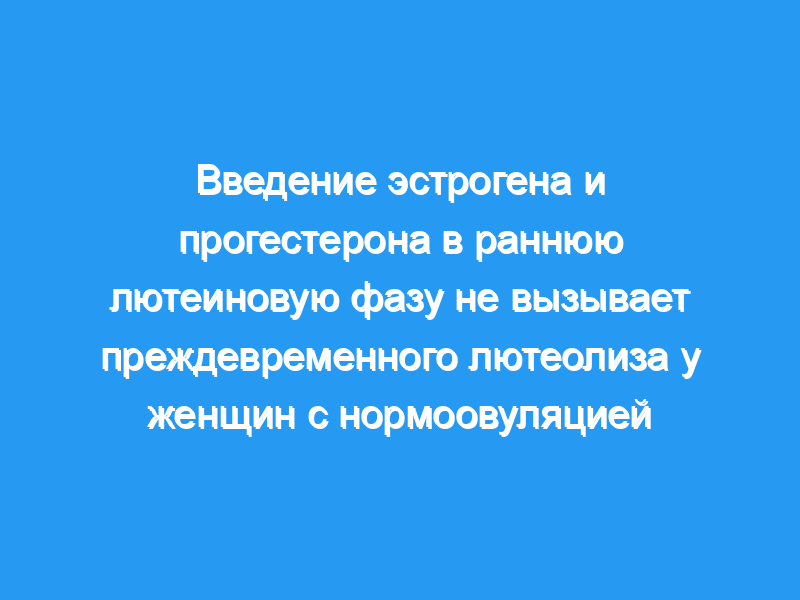 Сорок некурящих женщин с нормальным весом в возрасте от 18 до 37 лет, с регулярным менструальным циклом (24-35 дней), получали либо высокие дозы эстрадиола (Е2), прогестерона (Р), Е2+Р, либо не принимали никаких лекарств. Забор крови проводился через день со дня всплеска ЛГ до ЛГ+14. Основными результатами исследования были продолжительность лютеиновой фазы и эндокринные профили.