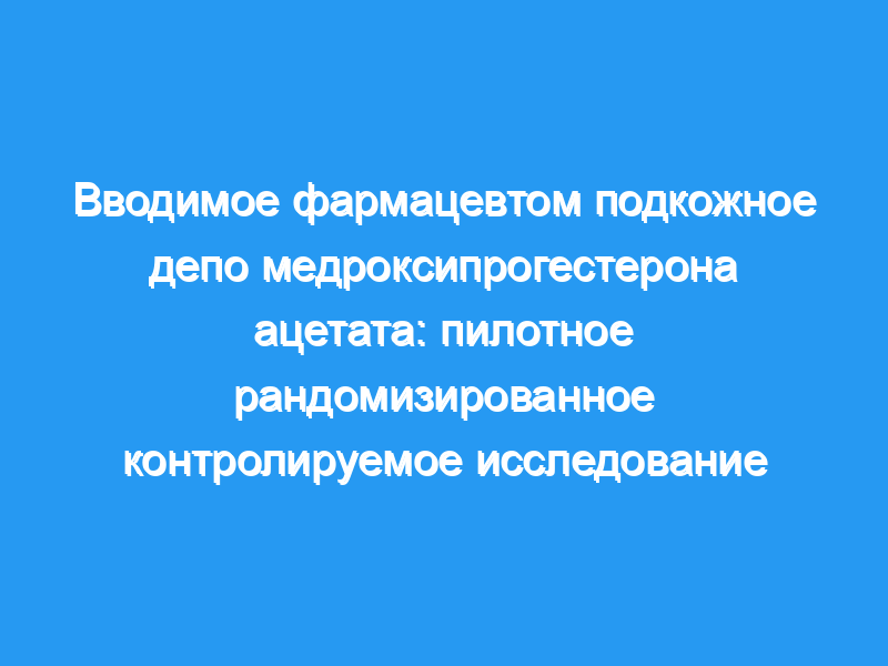 Целями этого исследования были оценка возможности введения подкожного депо медроксипрогестерона ацетата (DMPA-SC) в аптечных условиях и оценка удовлетворенности пациентов. План исследования: Пятьдесят женщин в возрасте не менее 18 лет, обратившихся в клинику планирования семьи для начала, продолжения или возобновления любой формы ДМПА, были рандомизированы для получения двух последующих инъекций в ближайшей аптеке обученными фармацевтами или в клинике. Женщины завершили два последующих опроса, чтобы оценить свою удовлетворенность DMPA-SC и своим опытом работы в клинике /аптеке.