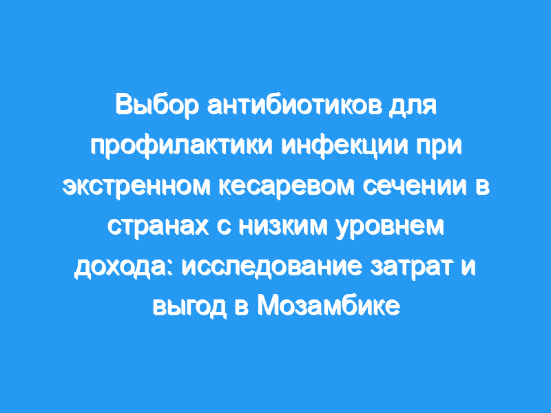 Необходимо оценить экономическую эффективность различных моделей применения антибиотиков для профилактики инфекции после кесарева сечения, особенно в условиях нехватки ресурсов. Дизайн: Рандомизированное, слепое сравнительное исследование однократной комбинированной предоперационной дозы гентамицина и метронидазола по сравнению со схемой профилактики инфекции после кесарева сечения.