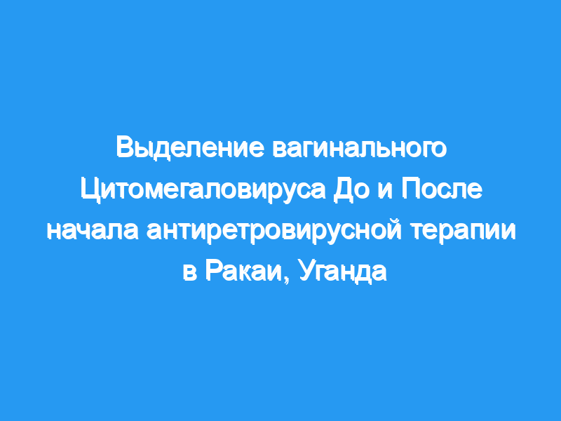 Выделение ДНК цитомегаловируса (ЦМВ) из влагалища было определено продольно у 96 женщин, коинфицированных вирусом иммунодефицита человека (ВИЧ), вирусом простого герпеса 2 и ЦМВ, начавших антиретровирусную терапию (АРТ) во время плацебо-контролируемого исследования подавления ВПГ-2 ацикловиром в Ракаи, Уганда.