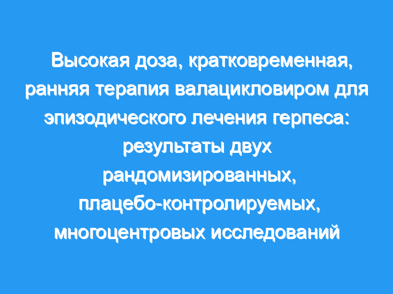 Это дает возможность изучить, эффективны ли высокие системные концентрации ацикловира при лечении герпеса (herpes labialis). Были проведены два рандомизированных двойных слепых плацебо-контролируемых исследования.