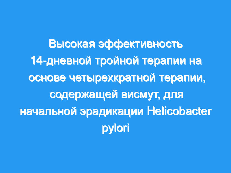 Добавление висмута и увеличение продолжительности лечения могут преодолеть резистентность H. pylori к кларитромицину и снизить бактериальную нагрузку. Четырнадцатидневная тройная терапия на основе четырехкратной терапии, содержащей висмут, позволила достичь 93% успеха ИТТ и может быть рекомендована в качестве режима эрадикации первой линии.