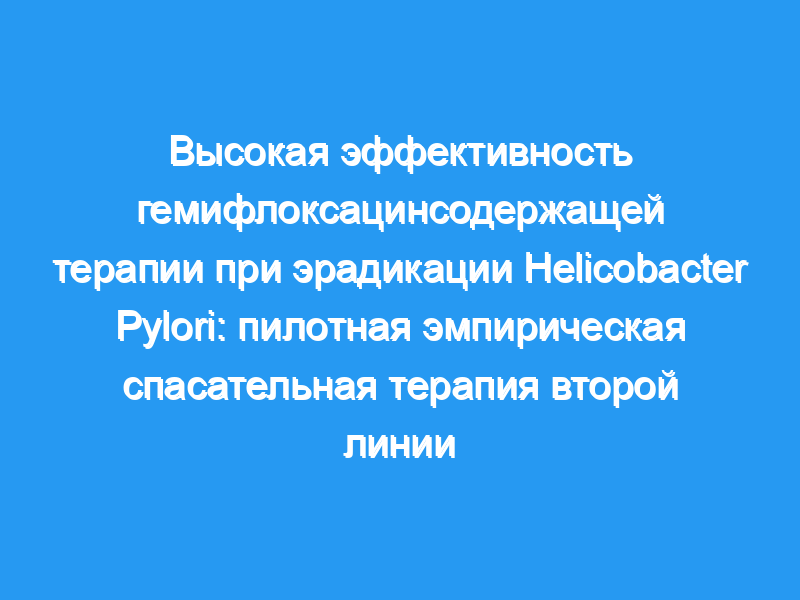 Это проспективное пилотное исследование проводилось в период с февраля 2014 по февраль 2015 года. Пациентам, инфицированным H. pylori, которым стандартная четырехкратная терапия первой линии (кларитромицин-амоксициллин-висмут-омепразол) не помогла, была назначена схема гемифлоксацина (разовая доза 320 мг) плюс двукратные суточные дозы амоксициллина 1g, висмута 240 мг и омепразола 20 мг в течение 14 дней. Для подтверждения эрадикации H. pylori через 4 недели после лечения был проведен дыхательный тест с 13C-мочевиной.Соответствие требованиям и частота побочных эффектов оценивались с помощью вопросников.