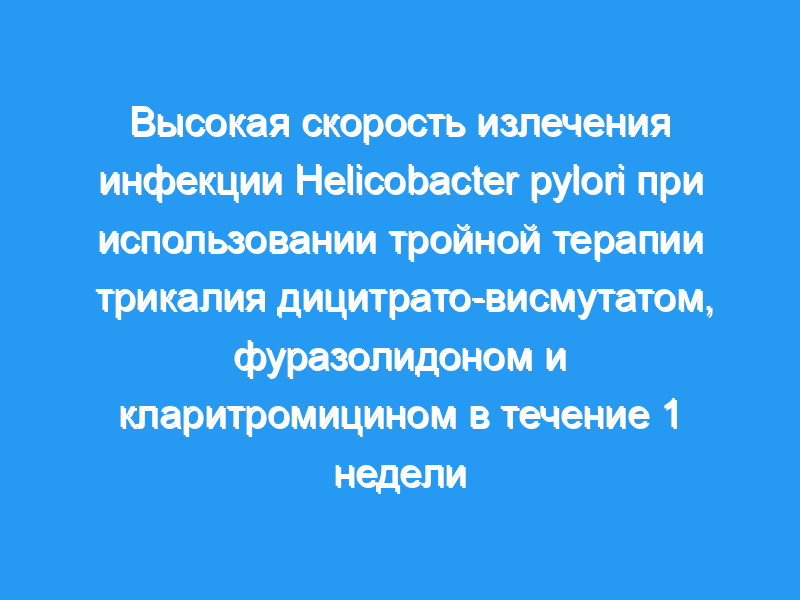 Однонедельная тройная терапия, состоящая из дицитратовисмута трикалия, низких доз фуразолидона и низких доз кларитромицина, позволяет достичь высокой скорости излечения H. pylori.