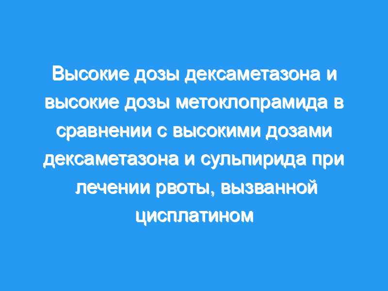Комбинацию высоких доз дексаметазона и высоких доз метоклопрамида (режим А) сравнивали с комбинацией высоких доз дексаметазона и сульпирида (режим В). Режим А оказался более эффективным, чем режим В, когда средний балл интенсивности рвоты был представлен только в двух категориях.