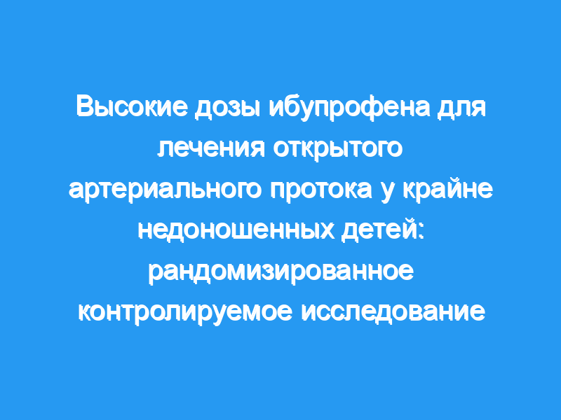 Нашей целью было оценить гипотезу о том, что режим приема ибупрофена в высоких дозах более эффективен, чем режим приема стандартных доз, при закрытии открытого артериального протока (PDA) без усиления побочных эффектов.