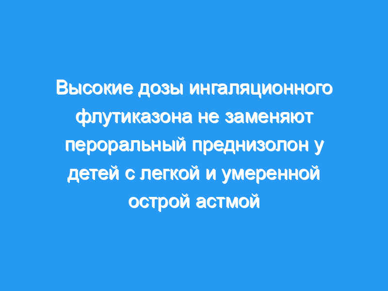 Ингаляционные кортикостероиды не так эффективны, как пероральные кортикостероиды, у детей школьного возраста с тяжелой острой астмой. Неясно, как ингаляционные кортикостероиды сравниваются с пероральными кортикостероидами при легких и умеренных обострениях. Основная цель: Целью данной работы было определить, существует ли существенная разница в процентном соотношении прогнозируемого объема форсированного выдоха за 1 секунду у детей с легкой и умеренной острой астмой, получавших либо ингаляционный флутиказон, либо пероральный преднизолон.