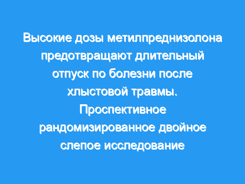 Результаты этого исследования показывают, что острое лечение высокими дозами метилпреднизолона может быть полезным для предотвращения длительного отпуска по болезни после хлыстовой травмы. Однако число обследованных пациентов было небольшим, и поэтому необходимы дальнейшие проспективные контролируемые исследования.