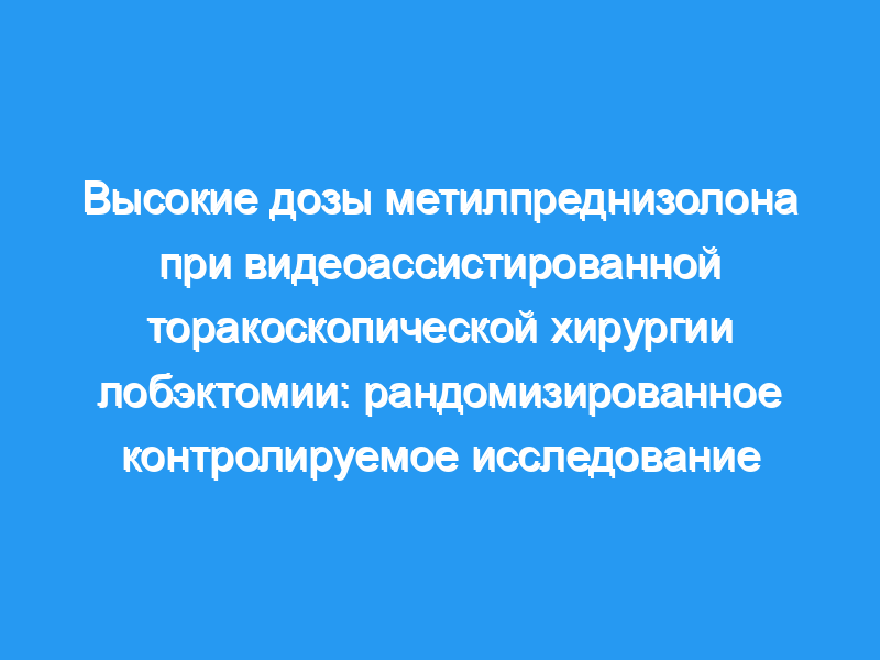Оптимальная послеоперационная стратегия обезболивания после видеоассистированной торакоскопической операции лобэктомии остается неопределенной. Мы предположили, что высокие дозы предоперационного метилпреднизолона (МП) улучшат обезболивание по сравнению с плацебо.