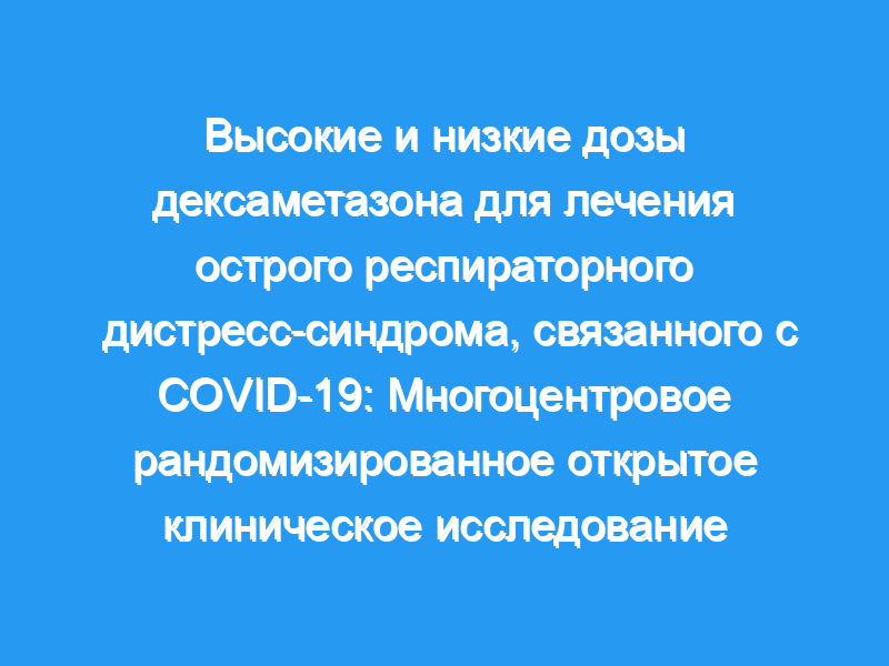Определить, увеличивает ли высокая доза дексаметазона количество дней без ИВЛ (VFD) среди пациентов с острым респираторным дистресс-синдромом (ОРДС), вызванным COVID-19. Дизайн: Многоцентровое, рандомизированное, открытое клиническое исследование. Участники: Последовательные пациенты с подтвержденными ОРЗ, связанными с COVID-19, были зачислены с 17 июня 2020 года по 27 марта 2021 года в четыре отделения интенсивной терапии (ОИТ) в Аргентине. Вмешательство: 16 мг дексаметазона внутривенно ежедневно в течение пяти дней, затем 8 мг дексаметазона ежедневно в течение пяти дней или 6 мг дексаметазона внутривенно ежедневно в течение 10 дней. Основные результаты и меры: Первичным результатом были дни без искусственной вентиляции легких в течение первых 28 дней. Вторичными исходами были смертность от всех причин на 28 и 90 день, частота инфицирования, мышечная слабость и контроль гликемии в первые 28 дней.
