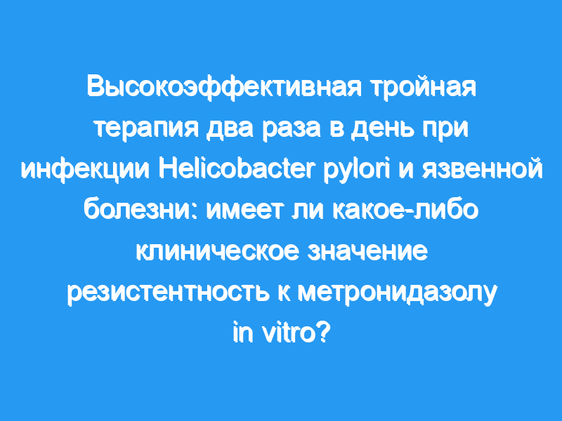 Сравнить показатели излечения инфекции Helicobacter pylori (H. pylori), заживления язв и побочных эффектов трех упрощенных схем тройной терапии у пациентов с язвенной болезнью. Двести тридцать один пациент был проспективно рандомизирован для получения любой схемы ОАМ (омепразол 20 мг в/в, амоксициллин 750 мг в/в и метронидазол 400 г в/в), ОКМ (омепразол 20 мг в/в.в/в, кларитромицин 250 мг в/в и метронидазол 400 мг в/в), или BCM (субцитрат висмута 240 мг в/в, кларитромицин 250 мг в/в и метронидазол 400 мг в/в).д.), все в течение 10 дней. О побочных эффектах сообщалось сразу же после этого в анкете, заполненной самостоятельно. Верхняя эндоскопия была проведена до лечения и через 2 месяца после лечения. Три антральных и три корпусных биоптата были проанализированы микробиологически и с помощью экспресс-теста на уреазу для определения присутствия H. pylori. Всего у 143 пациентов (62%) в начале лечения была активная язва. Резистентные к метронидазолу (M-R) штаммы H. pylori были обнаружены у 30% пациентов, в то время как ни у одного из них не было резистентных к кларитромицину (C-R) штаммов.