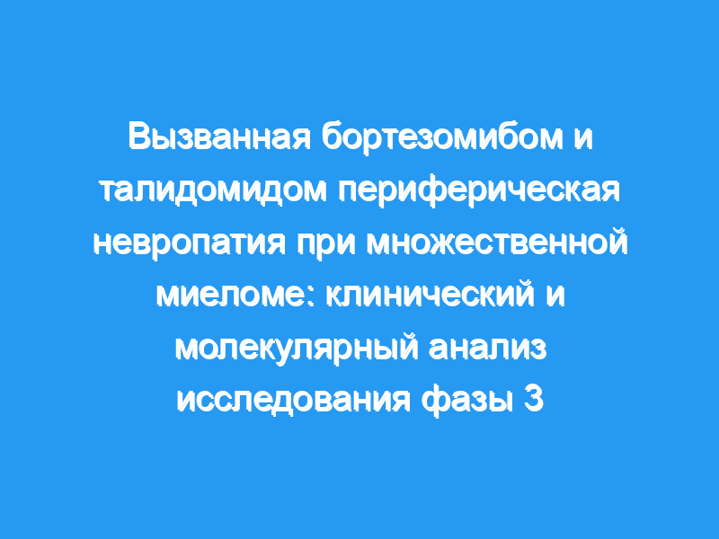 Был проведен субанализ исследования GIMEMA-MMY-3006 для характеристики периферической нейропатии (ПН), возникающей в результате лечения, у пациентов, рандомизированных на талидомид-дексаметазон (ТД) или бортезомиб-ТД (ВТД) до и после двойной аутологичной трансплантации (АСКТ) по поводу множественной миеломы (ММ). В общей сложности 236 пациентов, рандомизированных для ВТД и 238 для ТД, были стратифицированы в соответствии с появлением ПН ≥2 степени. Профили экспрессии генов (GEP) CD138+ плазматических клеток были проанализированы у 120 пациентов, получавших VTD.