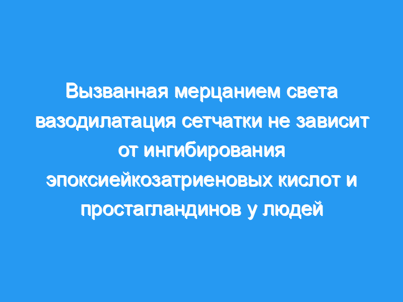 Эпоксиейкозатриеновые кислоты и простагландины вряд ли являются первичными медиаторами вызванной мерцанием света вазодилатации сетчатки у людей. Однако EETs могут играть определенную роль в регуляции сосудистого тонуса сетчатки и кровотока в физиологических условиях покоя.< / p>