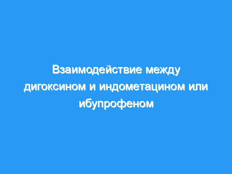 Уровень дигоксина в сыворотке крови, измеренный с помощью иммуноанализа с поляризацией флуоресценции, значительно увеличился (P менее 0,05) во время лечения индометацином по сравнению со значениями до лечения 0.73 +/- 0.34 нмоль л-1 (среднее значение +/- с.д.) до среднего значения 1.02 +/- 0.43 нмоль л-1, в то время как прием ибупрофена не изменял стабильную концентрацию дигоксина в сыворотке крови.