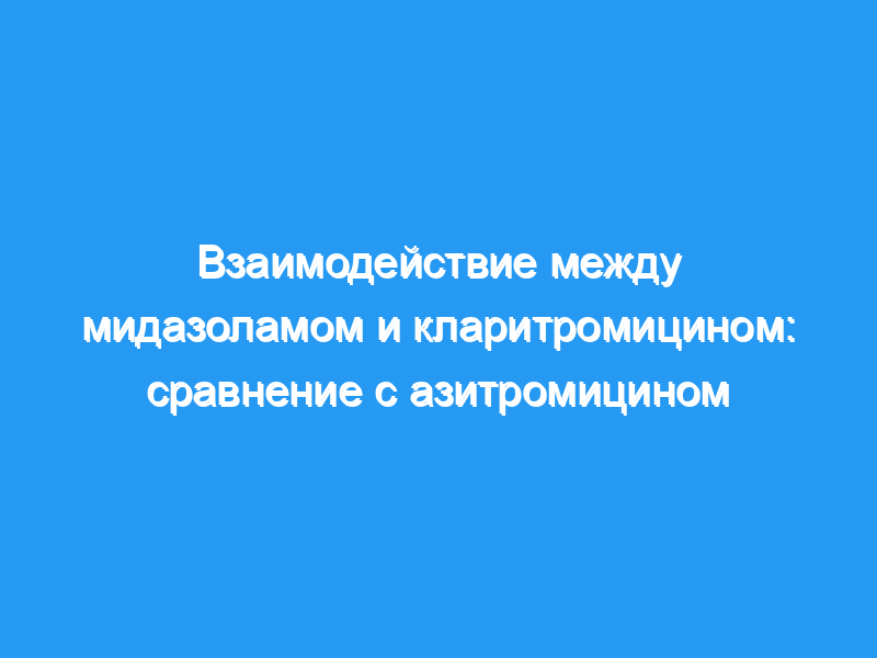 Было проведено сравнительное фармакокинетическое и фармакодинамическое исследование взаимодействия снотворного мидазолама с 2 различными антибиотиками макролидного ряда, кларитромицином и азитромицином.