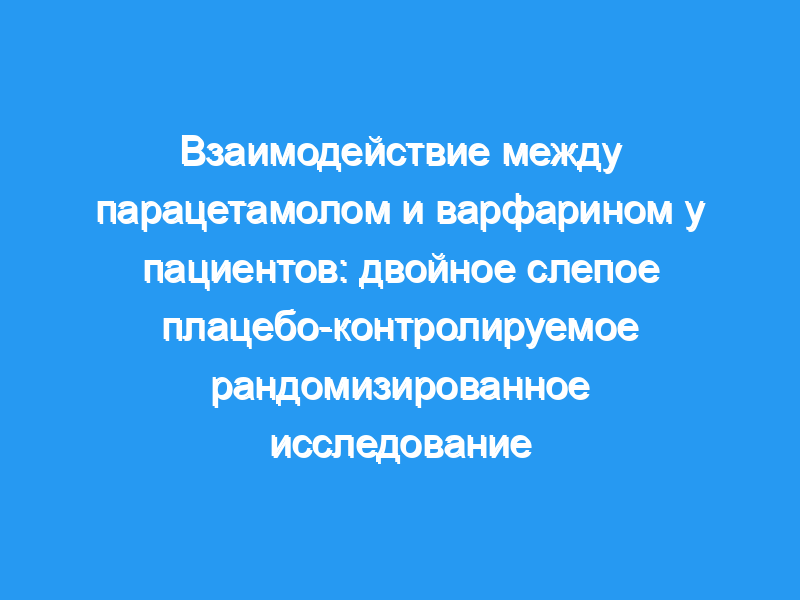 Общие сведения и цели: Иногда сообщалось о взаимодействии парацетамола (ацетаминофена) с варфарином. Основной конечной целью этого исследования было выяснить, усиливает ли назначение парацетамола антикоагулянтный эффект варфарина и механизм взаимодействия. Дизайн и методы: В двойном слепом плацебо-контролируемом рандомизированном перекрестном исследовании 20 пациентов, получавших стабильную пероральную антикоагулянтную терапию варфарином в течение не менее 1 месяца, были рандомизированы для приема плацебо или парацетамола по 1 г четыре раза в день в течение 14 дней. Международное нормализованное отношение (МНО) и активность факторов свертывания крови измеряли перед первым введением, а затем через несколько дней 2, 4, 7, 9, 11,14. p>
