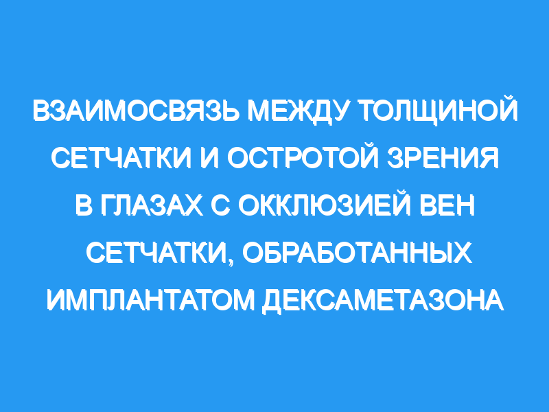 Пациентам с потерей зрения в результате макулярного отека (продолжительность ≥6 недель) после окклюзии ветви вены сетчатки или окклюзии центральной вены сетчатки применяли однократный интравитреальный имплантат с дексаметазоном или фиктивный имплантат. Перспективно определенные исходы включали BCVA и CRT (по оценке оптической когерентной томографии).