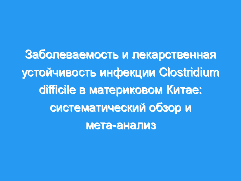 В этом исследовании мы стремились изучить заболеваемость CDI и основными эпидемическими и лекарственно-устойчивыми штаммами C. difficile в материковом Китае с помощью мета-анализа соответствующих исследований, опубликованных после 2010 года. Всего было включено 51 приемлемое исследование.