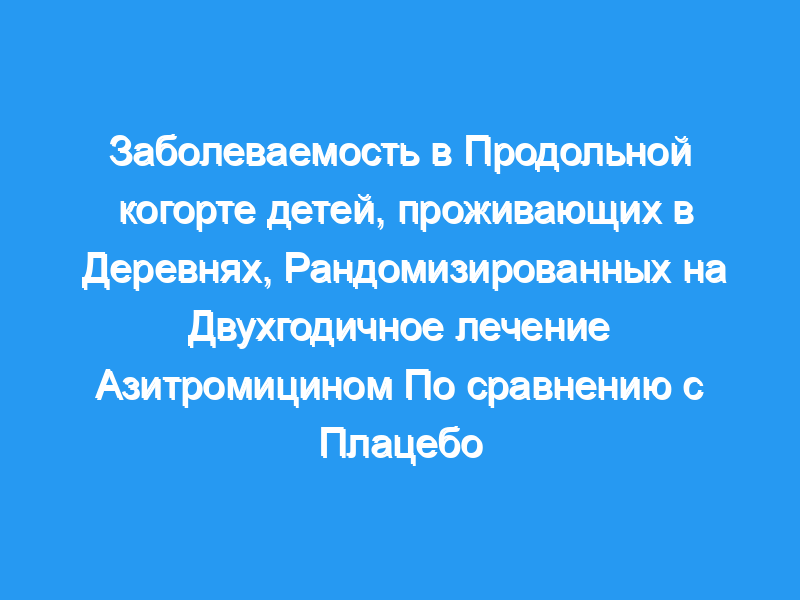 Тридцать деревень в Килосе, Танзания, были рандомизированы для получения двухлетнего лечения всех детей в возрасте 1-59 месяцев либо азитромицином (разовая доза 20 мг/кг), либо плацебо. Дети в возрасте 1-36 месяцев, участвовавшие в базовом обследовании, были включены в это когортное исследование и проспективно наблюдались в течение 2 лет. Каждые 6 месяцев дети наблюдались на предмет признаков и симптомов диарейных заболеваний, острых респираторных заболеваний и анемии. Модели со смешанными эффектами, которые включают возраст, время, период лечения и взаимодействие периода лечения и времени в качестве независимых предикторов, использовались для оценки различий между детьми по назначению лечения с течением времени.