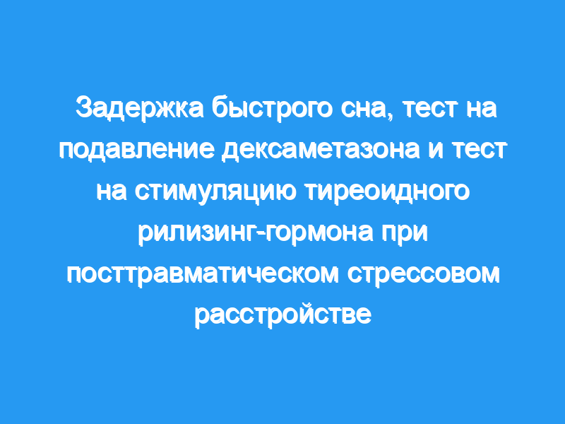 1. Двадцать один пациент с посттравматическим стрессовым расстройством (ПТСР) был включен в исследование, в котором использовались базовые измерения латентности быстрого движения глаз (REM), тест на подавление дексаметазона (DST) и тест на стимуляцию протирелином (тиреоидный рилизинг-гормон, TRH).