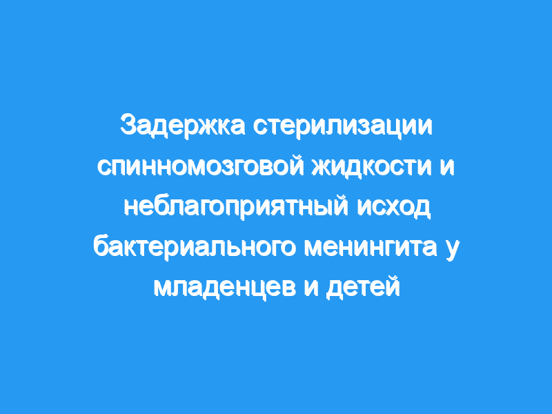 Судороги, субдуральные выпоты и гемипарез значительно чаще обнаруживались во время госпитализации у пациентов с отсроченной стерилизацией ликвора. У детей с устойчиво положительными культурами была значительно более высокая частота неврологических нарушений на момент выписки из больницы (45% против 19%) и при последующем наблюдении (41% против 13%), а также умеренных или глубоких нарушений слуха (35% против 15%), чем у детей с быстрой стерилизацией ликвора.. Повторное исследование ликвора является полезным прогностическим показателем у младенцев и детей раннего возраста с бактериальным менингитом.