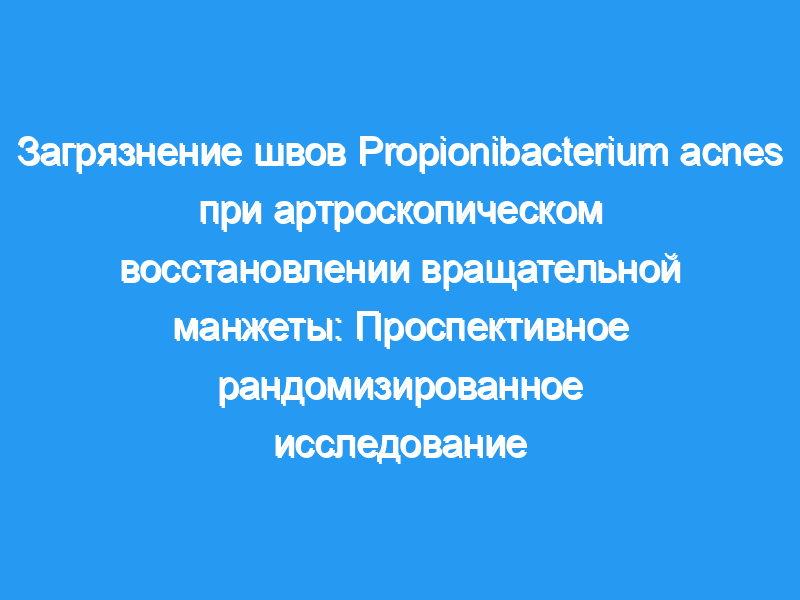 Общая частота положительных культур Propionibacterium acnes составила 47% (14 из 31 случая) в группе повидон-йода, 33% (11 из 33 случаев) в группе повидон-йода с драпировкой, 33% (10 из 30 случаев) в группе хлоргексидин-спиртовая группа и 9,3% (3 из 32 случаев) в хлоргексидин-спиртовой группе с драпировкой. Частота положительных посевов в группе, получавшей хлоргексидин-спирт с драпировкой, была ниже, чем в группе, получавшей повидон-йод (относительный риск 0,2, 95% доверительный интервал: 0,064-0,63, количество, необходимое для лечения, 2,7, P <, .0001). Коагулазонегативные стафилококки были выделены в группе повидон-йод с драпом (1 случай) и хлоргексидин-спирт с драпом (2 случая). Никакие другие бактерии не были выделены, и ни у одного из пациентов, получавших лечение в этом исследовании, не возникло инфекций в течение минимального 12-месячного периода наблюдения.