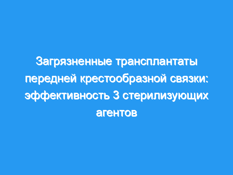 Это исследование показывает, что при падении образцов на пол происходит значительное загрязнение, поскольку 58% упавших трансплантатов имели положительные культуры. Из 3 используемых методов стерилизации хлоргексидин глюконат, по-видимому, является наиболее эффективным, и только одна культура бульона (2%) оказалась положительной. Раствор антибиотика был вторым лучшим (6%), хотя статистически значимой разницы между этими 2 группами нет. 10%-ный раствор провидон-йода в этих условиях испытаний был наименее эффективным из всех 3 стерилизующих агентов с 24% положительными культурами после погружения.