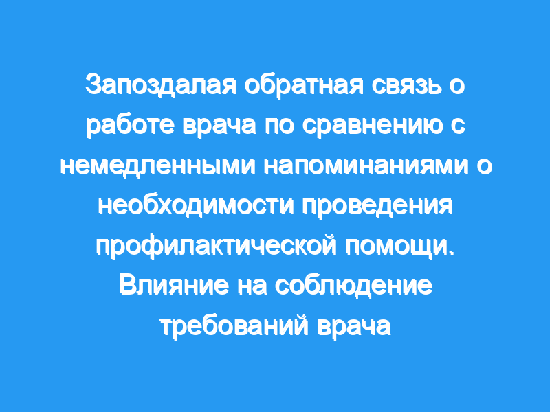 Соблюдение врачом рекомендуемых протоколов профилактической помощи может быть повышено как за счет отсроченной обратной связи, так и за счет немедленных напоминаний, но напоминания имеют больший эффект.