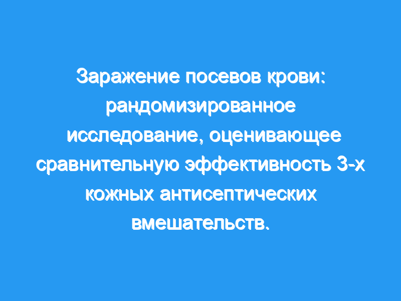 Учебная больница на 885 коек. Пациенты: Все взрослые пациенты, проходившие забор культуры периферической крови на 3 медико-хирургических этажах с мая 2009 года по сентябрь 2009 года. Вмешательство: Каждое антисептическое вмешательство использовалось в течение 5 месяцев на каждом этаже исследования, со случайным пересечением после 1-месячного периода вымывания. Бригады флеботомии собрали все культуры периферической крови. Каждый положительный посев крови оценивался врачами, не знавшими о вмешательстве, и оценивался как истинно положительный или зараженный посев крови. Первичным результатом была скорость заражения культуры крови для каждого антисептического средства.