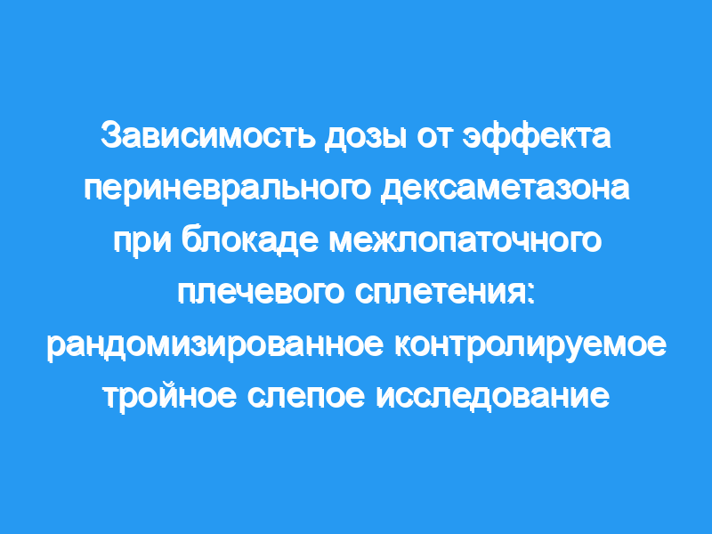 Максимальная доза периневрального дексаметазона составляет 4 мг для увеличения продолжительности обезболивания после инъекции местного анестетика длительного действия для блокады периферических нервов, но доказательств для доз Это рандомизированное контролируемое тройное слепое исследование проверило гипотезу о том, что увеличение доз периневрального дексаметазона от 1 мг до 4 мг увеличило бы продолжительность обезболивания при дозозависимом манне. Восемьдесят пациентов ASA, которым была назначена артроскопия плеча под общей анестезией с блокадой межлопаточного плечевого сплетения под ультразвуковым контролем, были случайным образом распределены для получения физиологического раствора (контроль), дексаметазон 1 мг, 2 мг, 3 мг и 4 мг вместе с 20 мл ропивакаина 0,5%. Послеоперационная анальгезия состояла из парацетамола, диклофенака и оксикодона по запросу, с использованием заранее определенного протокола. Основным результатом была продолжительность анальгезии, определяемая как время между процедурой блокады и первым запросом на обезболивание. Вторичные результаты включали оценки боли в покое и динамике, а также потребление анальгетиков через 2 ч, 24 ч и 48 ч после операции. Анализ зависимости доза-реакция был выполнен с использованием процедуры множественного сравнения-modellin. Медиана (IQR [диапазон]) продолжительности обезболивания была значительно увеличена дозозависимым образом: контроль 685 (590-860 [453-1272]) мин, 1 мг 835 (740-1110 [450-1375]) мин, 2 мг 904 (710-1130 [525-1365]) мин, 3 мг 965 (875-1025 [730-1390]) мин, 4 мг 1023 (838-1239 [518-1500]) мин (р = 0,03). Не было никаких существенных различий между вторичными результатами. Периневральное введение дексаметазона в дозах от 1 мг до 4 мг в сочетании с ропивакаином для блокады межлопаточного плечевого сплетения увеличивает продолжительность обезболивания дозозависимым образом. Авторы исследования: E Albrecht, M Reynvoet, N Fournier, M Desmet Отзывы пациентов на diclofenac Отзывы пациентов на paracetamol Отзывы пациентов на dexamethasone Отзывы пациентов на ropivacaine
